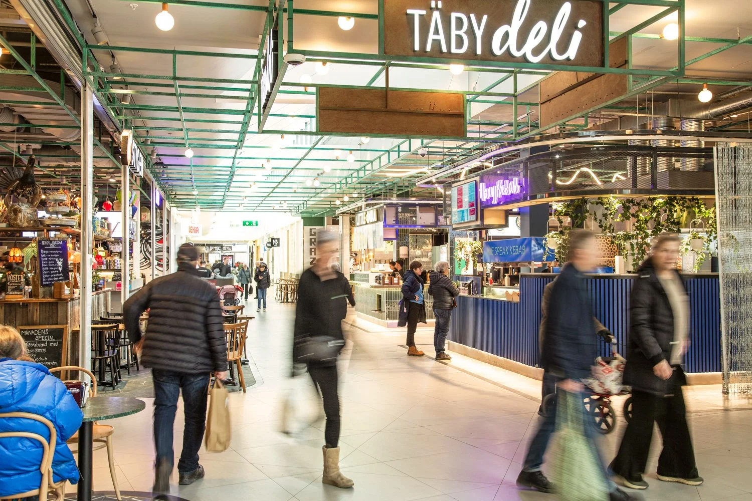 Täby Deli i hjärtat av Westfield Täby Centrum behövde en facelift, då tidigare sittyta var dåligt nyttjad. ElinderSten fick uppdraget att ta fram ett nytt koncept för ytan, samt komplettera med två nya kiosker med mataktörer som berikar utbudet. I projektet har vi tillfört nya tydliga entréer för att skapa ett naturligt flöde till och genom ytan. Inredningen har en variation med olika typer av sittningar, för en snabb fika, en lunch eller en längre middag.